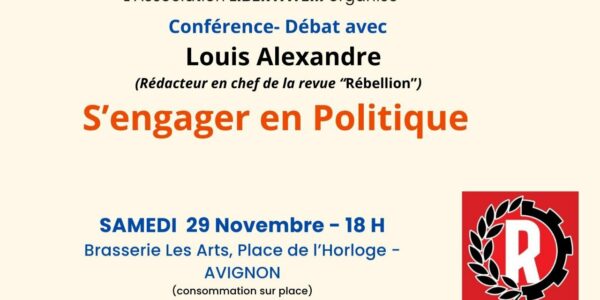 E&R Rhône-Alpes recevra Camille Mordelynch et Louis Alexandre à Lyon (intra-muros) le samedi 7 décembre 2024 à 15 h pour une conférence intitulée « Métaphysique de la guerre et […]